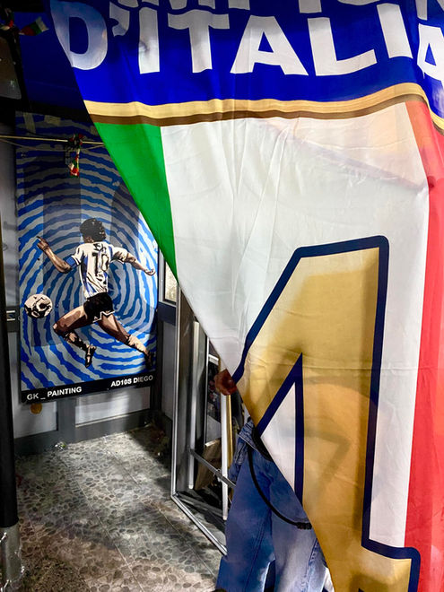 L’aria era densa, quasi solida. Già settimane prima del verdetto matematico, il Largo si era trasformato in una foresta di nastri e bandiere che filtravano la luce del sole, colorando ogni cosa di un turchese onirico. Non c’era turista o residente che non passasse di lì per lasciare un fiore, un cero o un pensiero ai piedi del murale di Diego, come a voler rassicurare il "Padre del Napoli" che il cerchio si stava finalmente chiudendo.