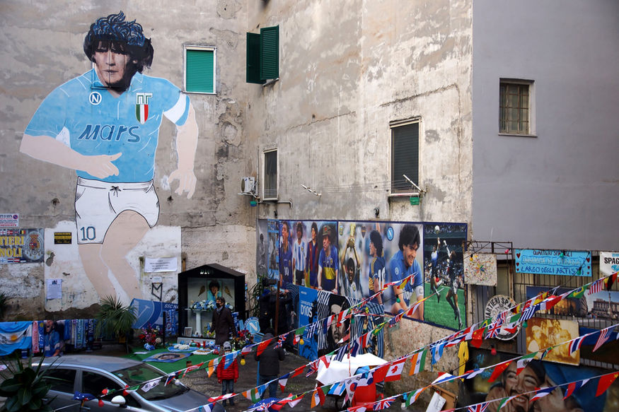 Il murales storico di Maradona nei Quartieri Spagnoli di Napoli che si trova sulla facciata laterale di un palazzo in Via De Deo, il murales è stato la prima opera urbana dipinta in onore del calciatore argentino.
